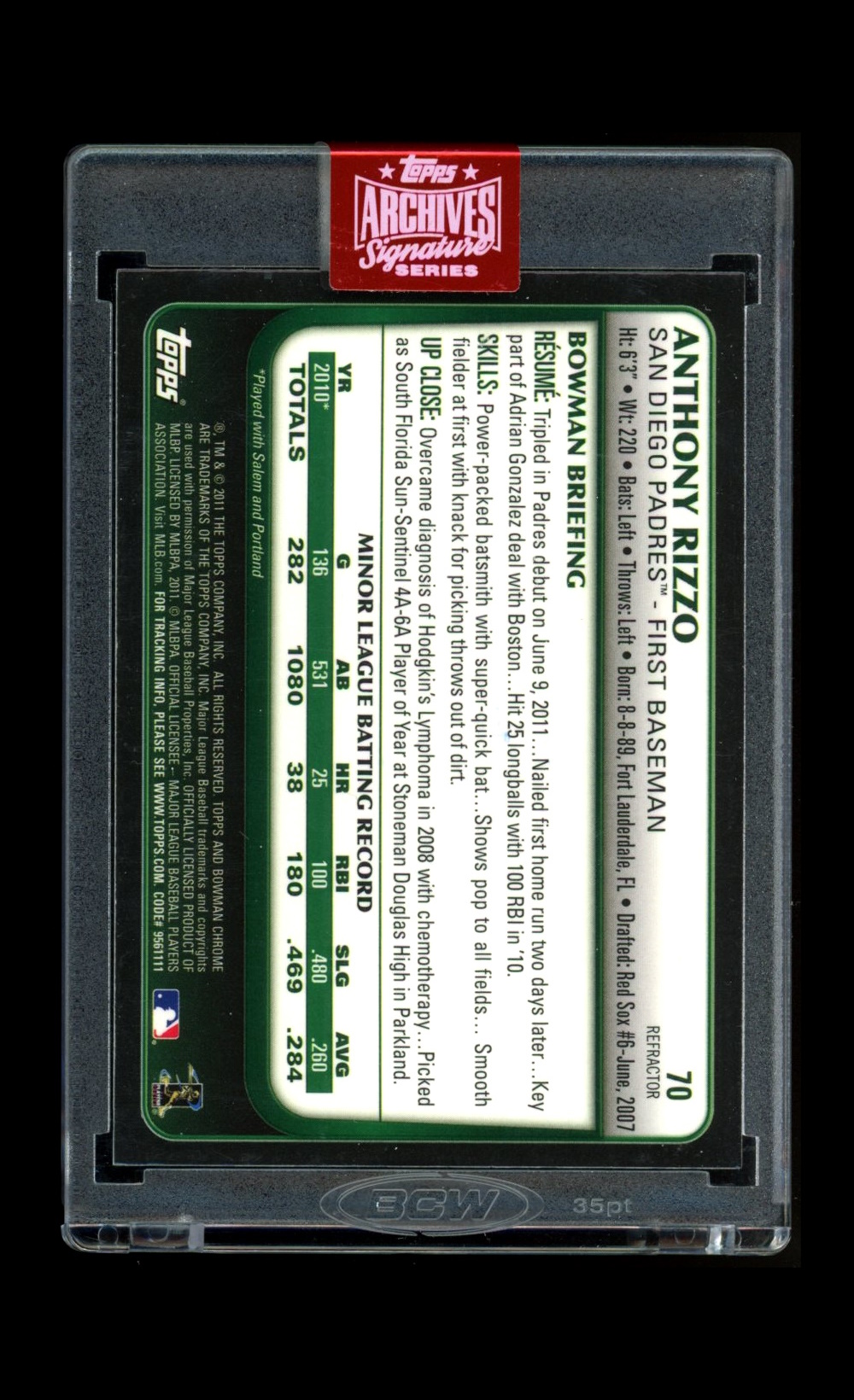 2019 Topps Archives Signature Anthony Rizzo (2011 Bowman Chrome #70)-b