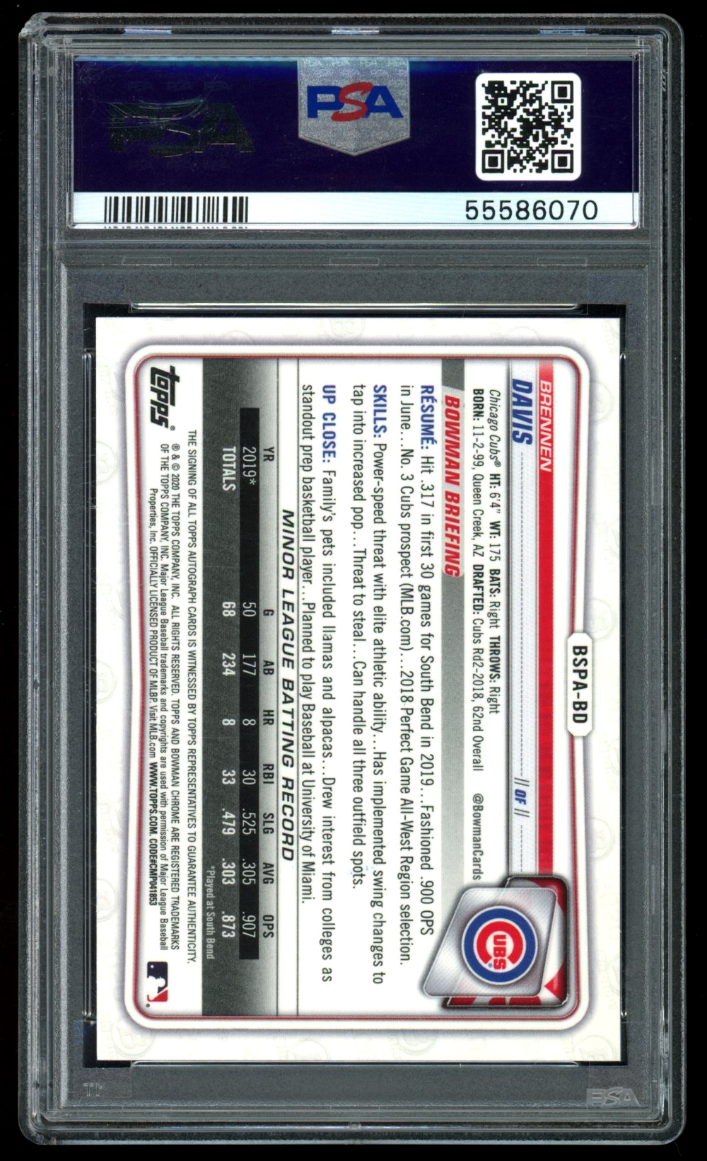 2020 Bowman Chrome Sapphire Auto Purple #BSPABD Brennen Davis PSA 10-b