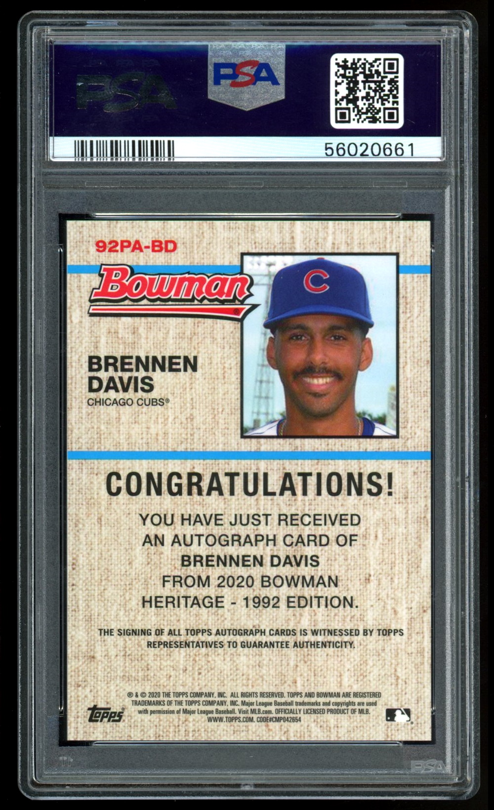 2020 Bowman Heritage Chrome Auto Superfractor #BD PSA 9-b